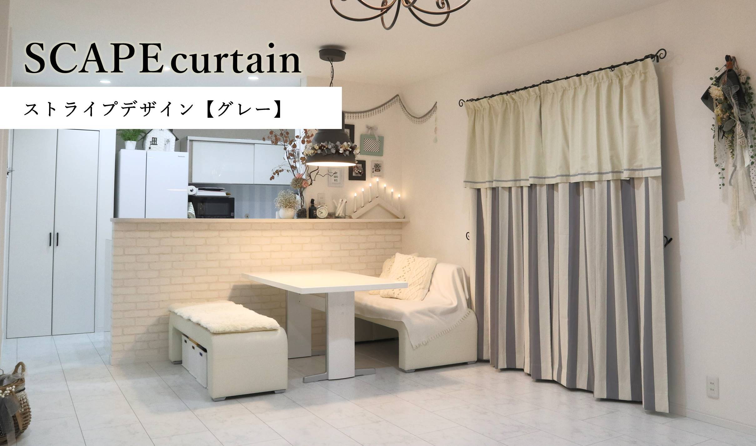 【在庫限りセール中】高さ調整52cm | 2枚組 両開き ストライプデザイン SCA206 スケープカーテン (1.78~2.3m/1.98~2.5m) 遮光1級 | SCAPE|どこでもカーテン「スケープ」 - サイズ調整自由自在